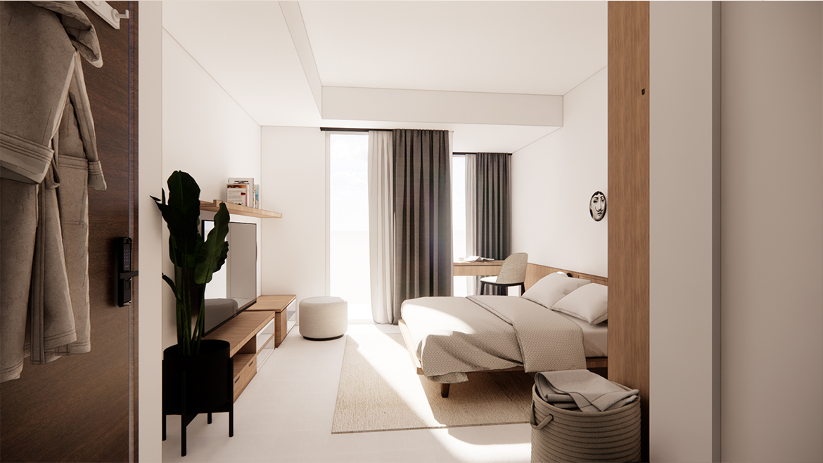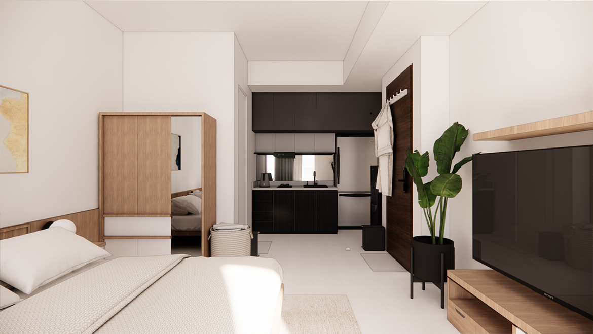 - Balkon : Gypsum board, white finish (water resistant) - Pintu dan jendela : Engineered wood, fin. Duco, stainless handle
